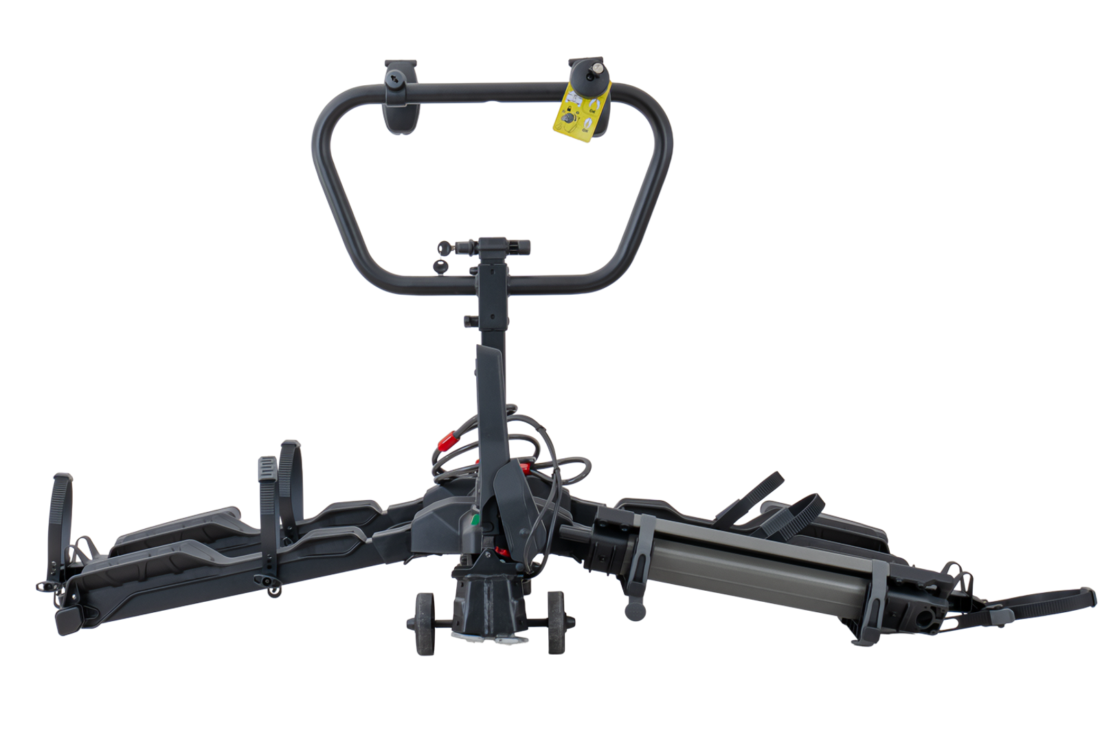 Cała konstrukcja charakteryzuje się w pełni składaną konstrukcją ale również wyjątkową wytrzymałością, pozwalając na transport rowerów o łącznej masie do 60 kg. Spider 2E PRO został wyposażony w funkcję odchylania, dzięki której dostęp do bagażnika auta pozostaje możliwy nawet przy zamontowanych rowerach. Dla wygody użytkownika, platforma została wyposażona również w zintegrowane kółka transportowe.