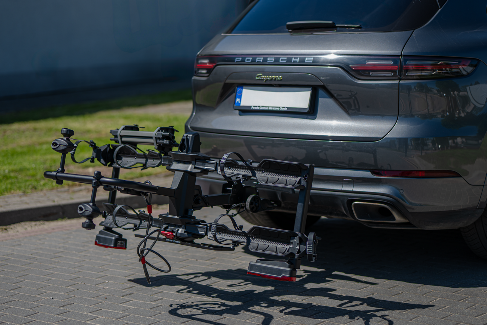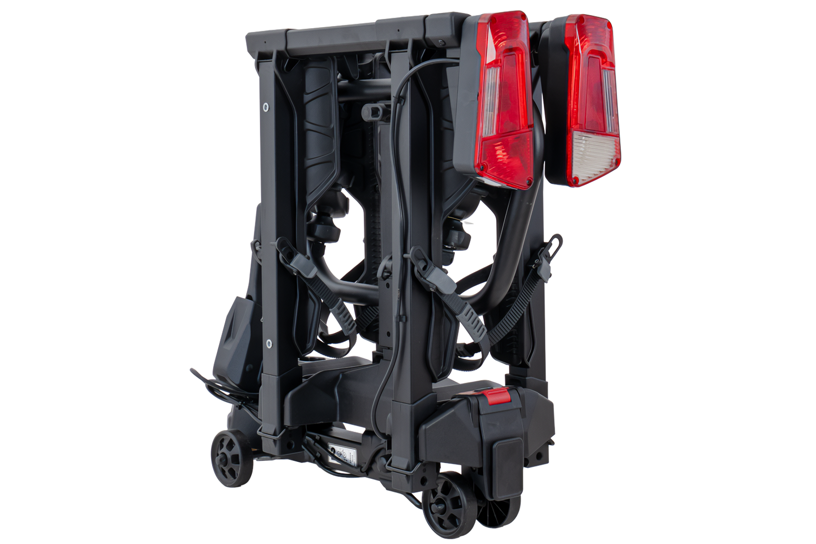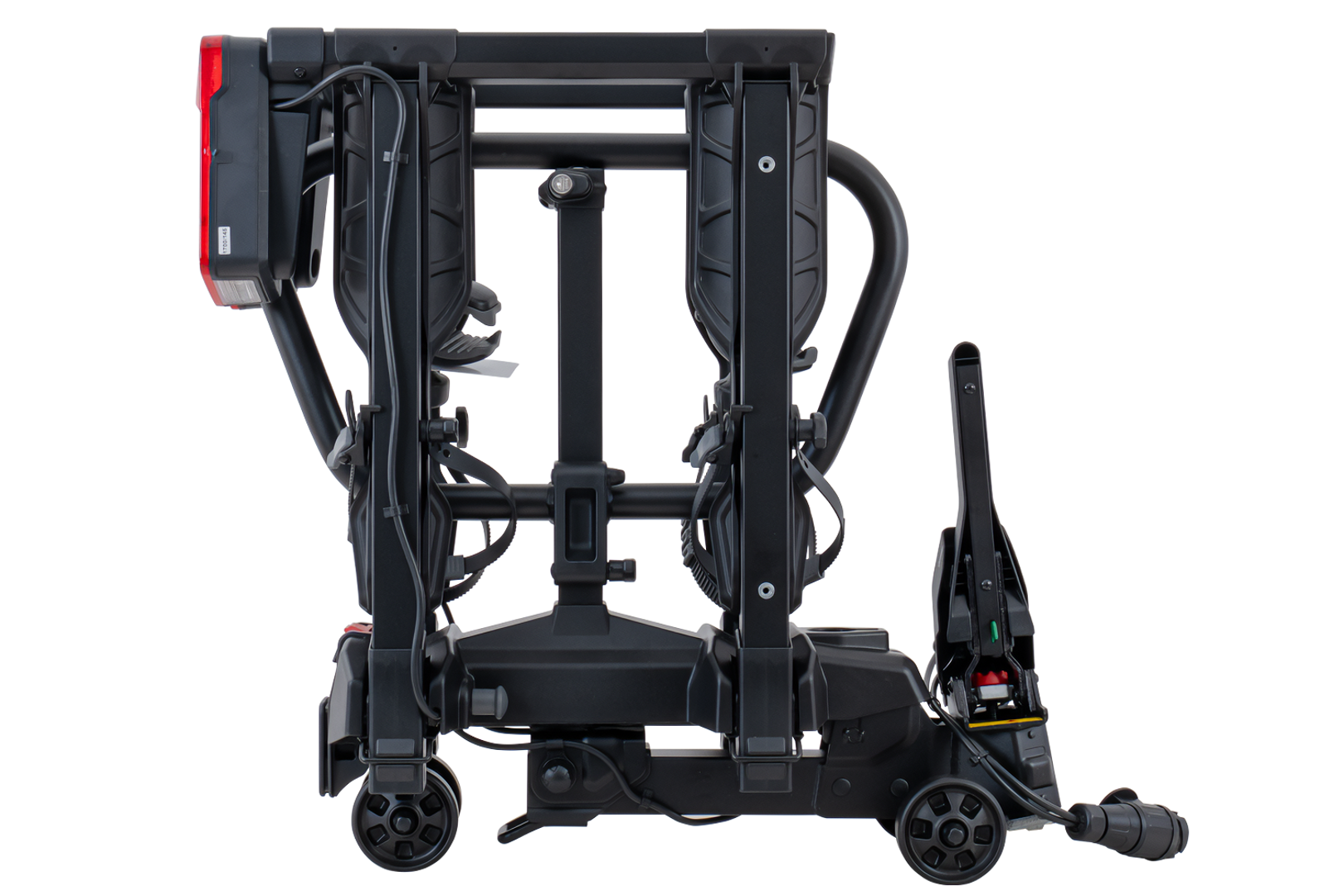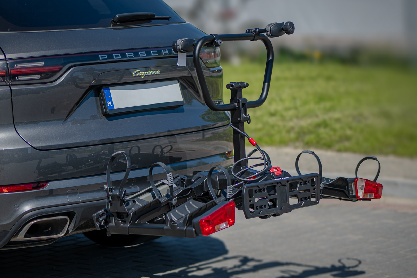 Platforma umożliwia przewóz 2 rowerów elektrycznych o wadze do 30 kg każdy, co sprawia, że jest idealnym rozwiązaniem dla miłośników wszystkich rowerów elektrycznych. Stabilne mocowanie do kuli haka holowniczego odbywa się przy pomocy systemu Conical z dźwignią i zintegrowanym systemem regulacji zacisku, który gwarantuje szybki, intuicyjny montaż i pewne mocowanie bagażnika w każdych warunkach. System mocowania został dodatkowo zabezpieczony zamkiem.
