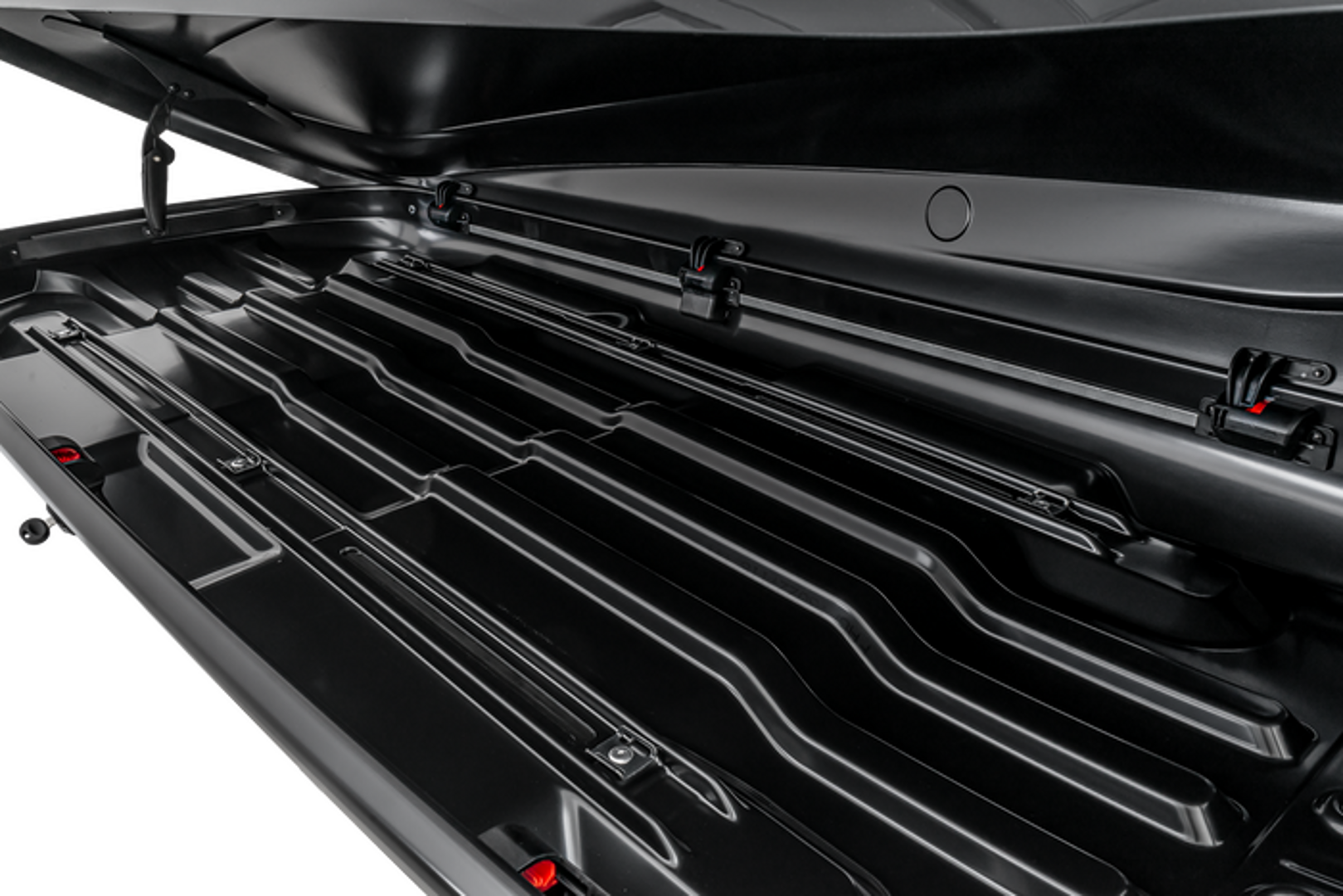 Długość zewnętrzna 215 cm pozwala wygodnie przewozić deski snowboardowe, narty do 210 cm a także walizki, wózek dziecięcy, sprzęt kempingowy czy inny bagaż zabierany na wyjazd. Pojemność 440 litrów zapewnia swobodę planowania bagażu przy zachowaniu porządku i łatwego dostępu do niego. Ładowność 75 kg i waga 23,5 kg to praktyczny kompromis między wytrzymałością a łatwością montażu i demontażu boxu.